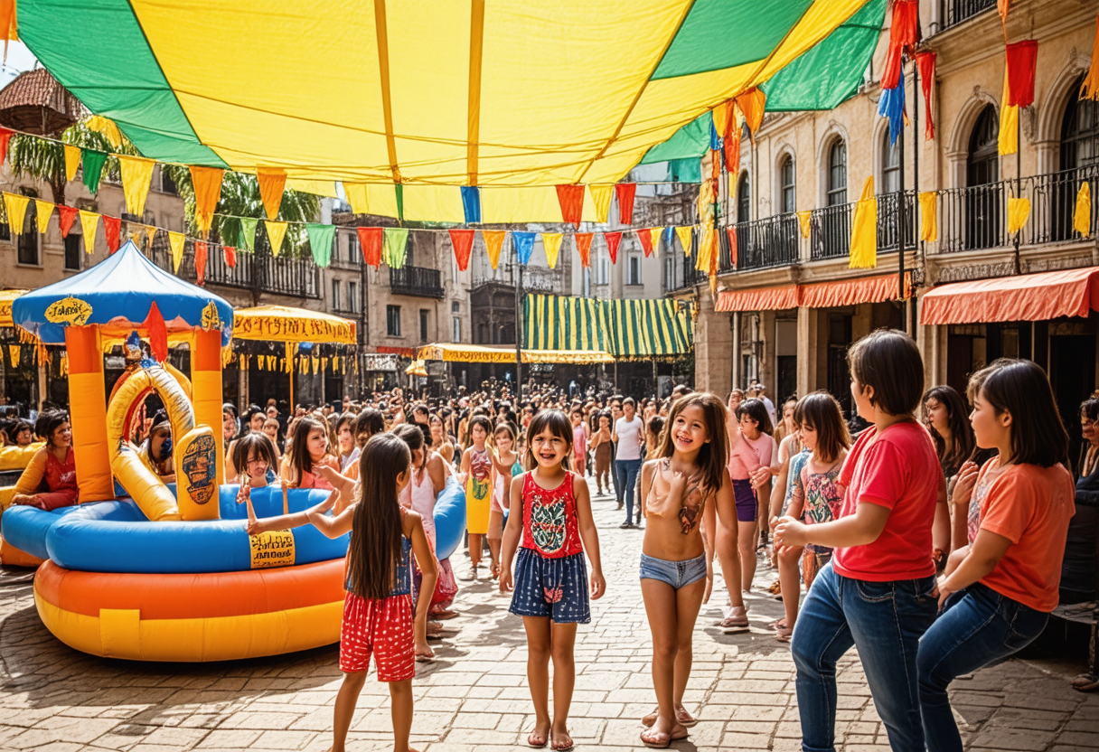 - Zona de juegos tradicionales: camas elásticas, carruseles y parques infantiles temporales.
